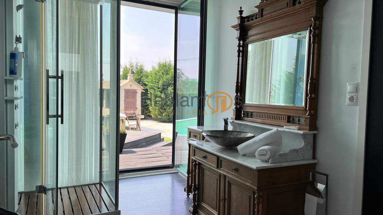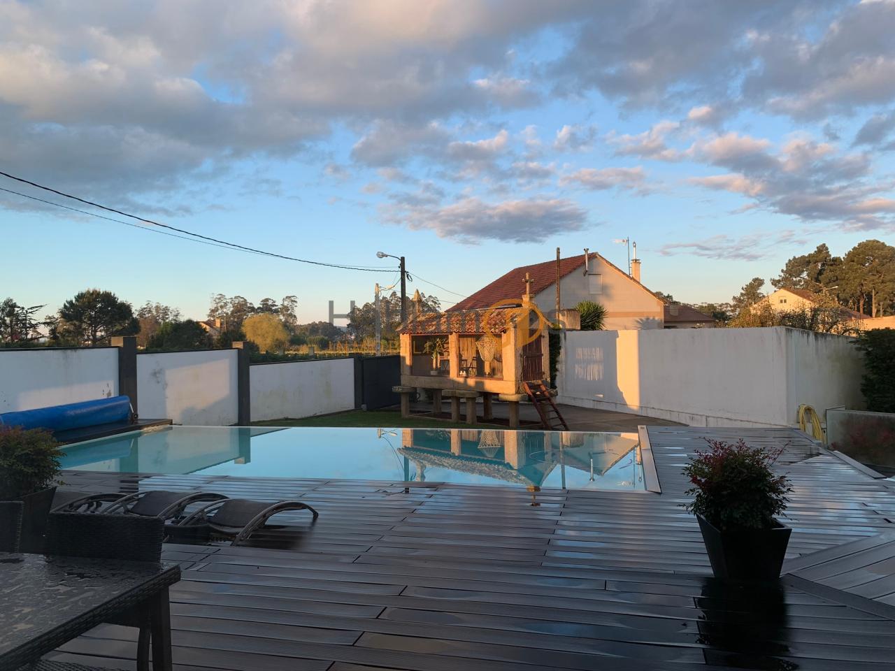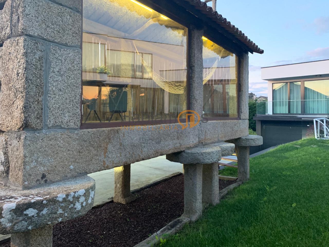 En el exterior, la propiedad ofrece una preciosa piscina, rodeada de tarima y zonas de descanso, ideal para disfrutar de largas jornadas al aire libre. La finca cuenta además con zona de juegos infantil, espacios ajardinados y una cómoda zona de aparcamiento para varios vehículos. Uno de los elementos más singulares es su hórreo tradicional reconvertido en una elegante salita acristalada, un detalle exclusivo que aporta carácter, historia y un encanto absolutamente diferenciador.