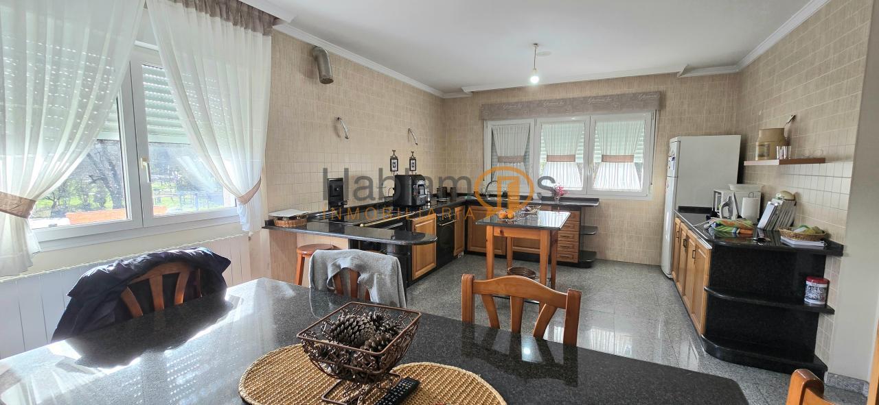 La vivienda se completa con un salón de grandes dimensiones, muy luminoso, con salida a balcón y una chimenea de gran tamaño, ideal para crear un ambiente acogedor. La cocina independiente, amplia y práctica, se organiza en dos zonas diferenciadas, ambas muy luminosas gracias a sus amplios ventanales.