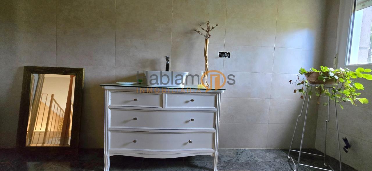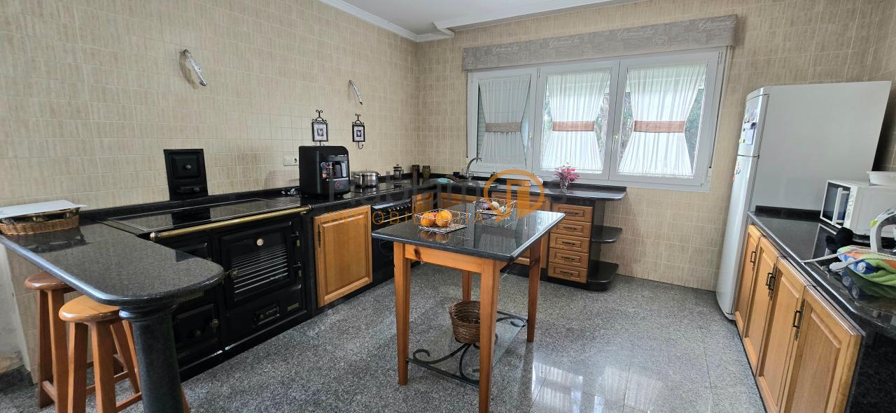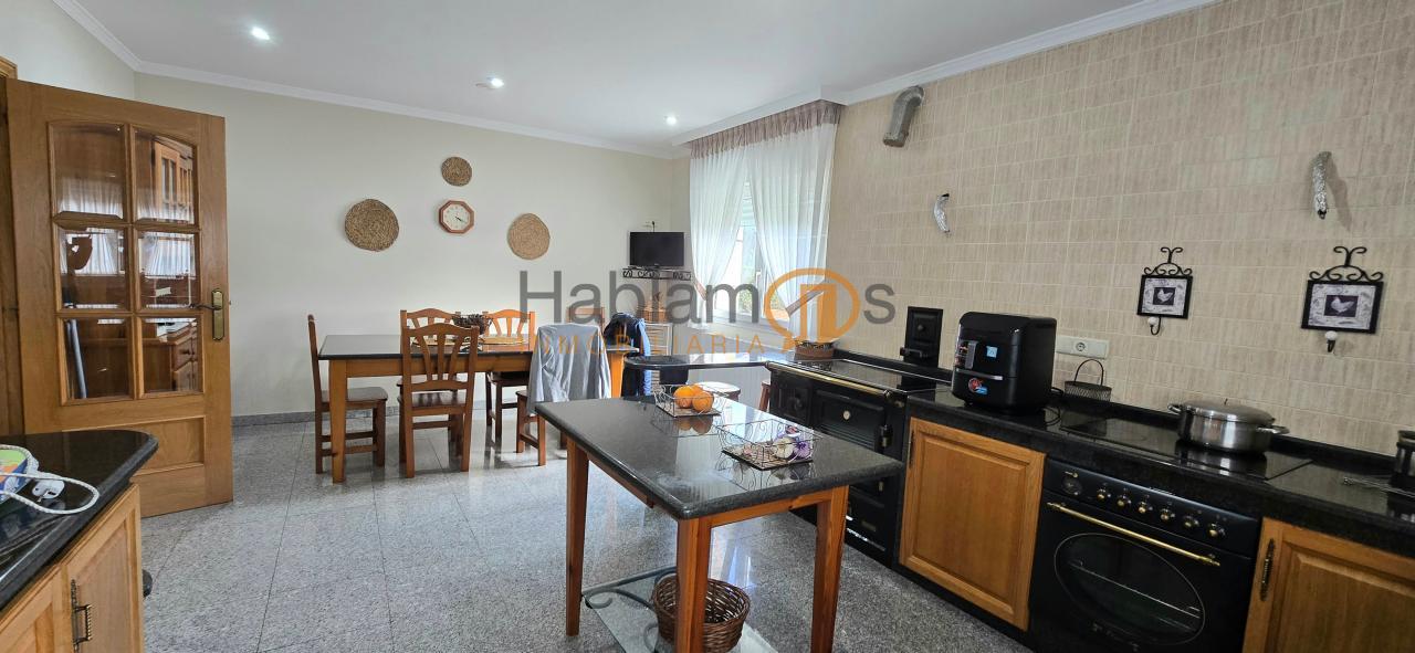 El garaje, con capacidad para 3 o 4 vehículos, incorpora además una cocina auxiliar, perfecta para reuniones, celebraciones o como espacio multifuncional.