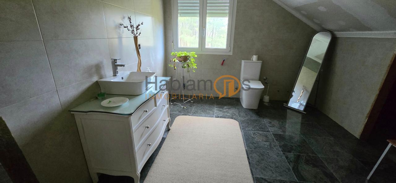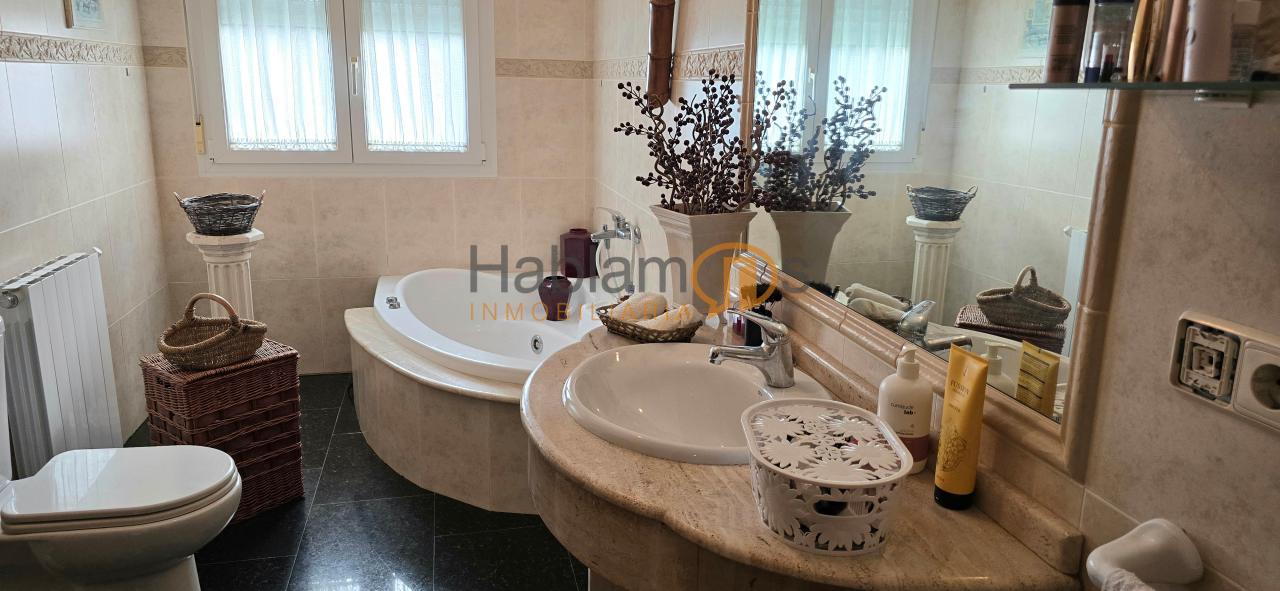 La propiedad ofrece 3 cuartos de baño, uno de ellos en suite en el dormitorio principal, otro en la primera planta y un tercero en la planta superior, garantizando comodidad y funcionalidad para toda la familia.