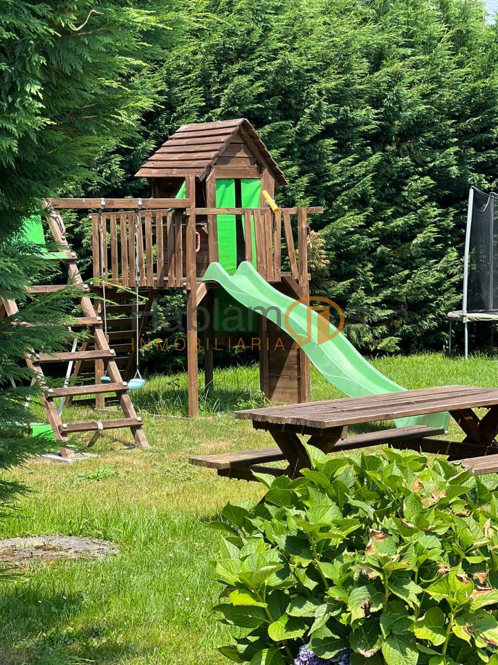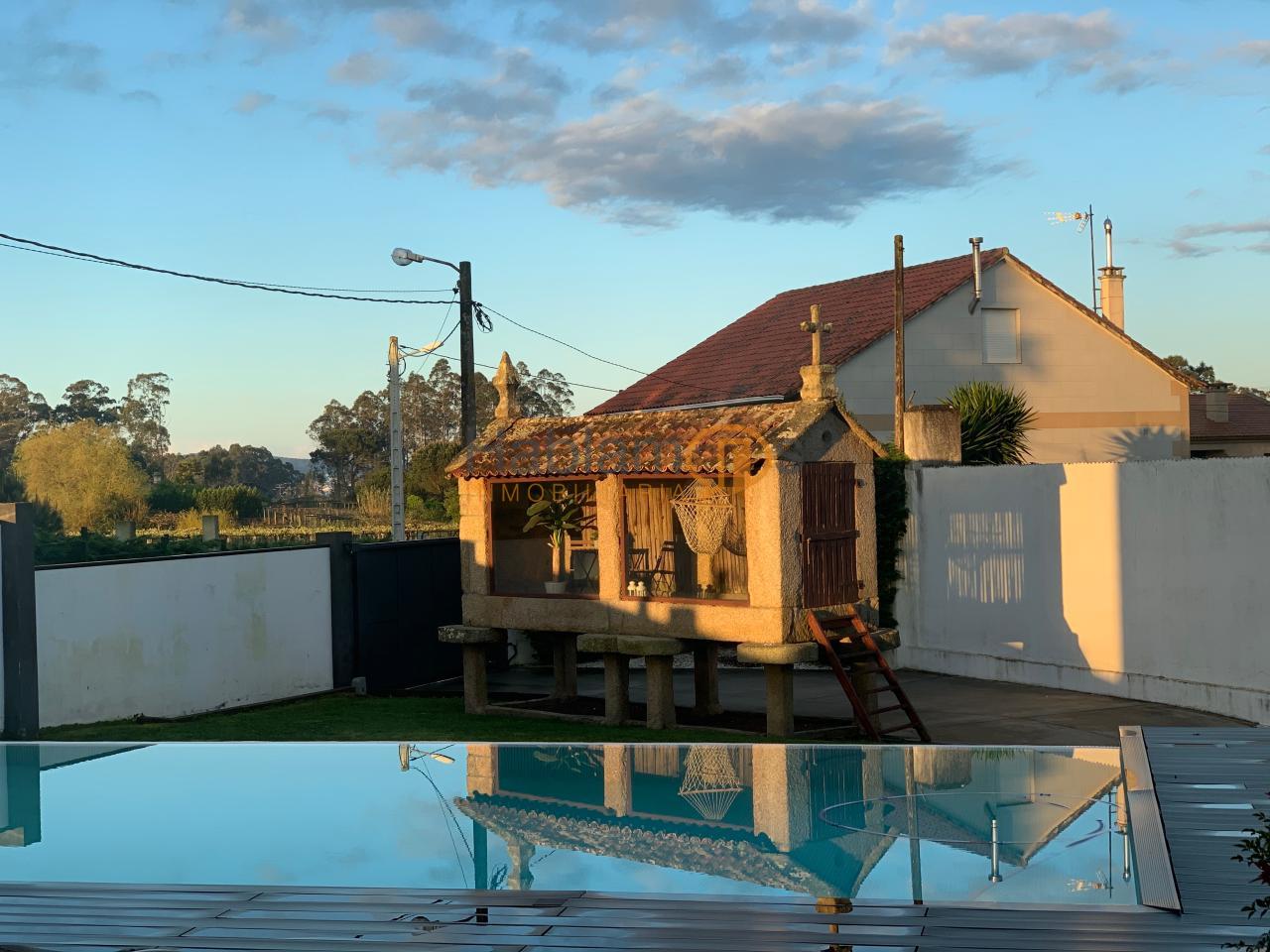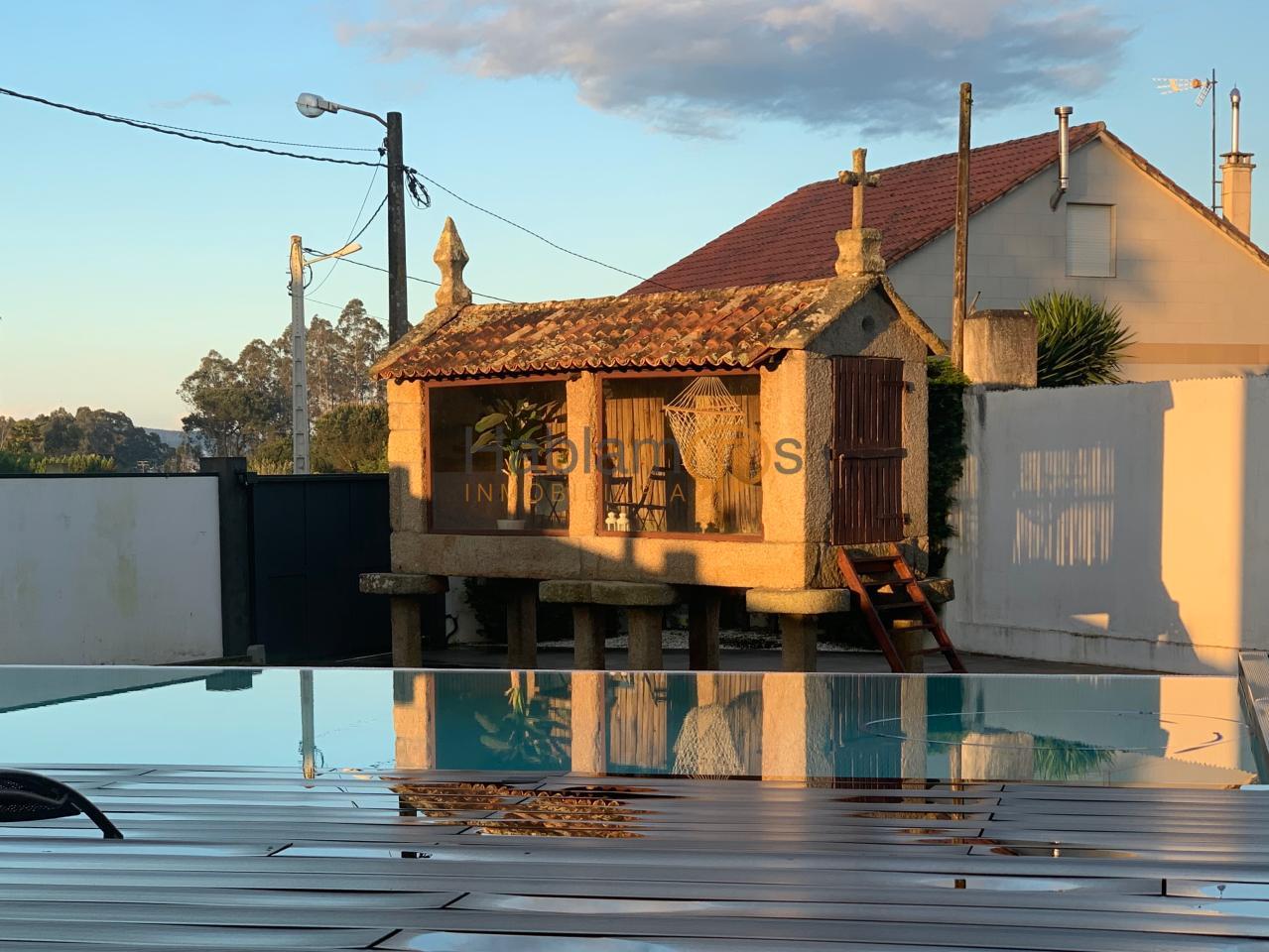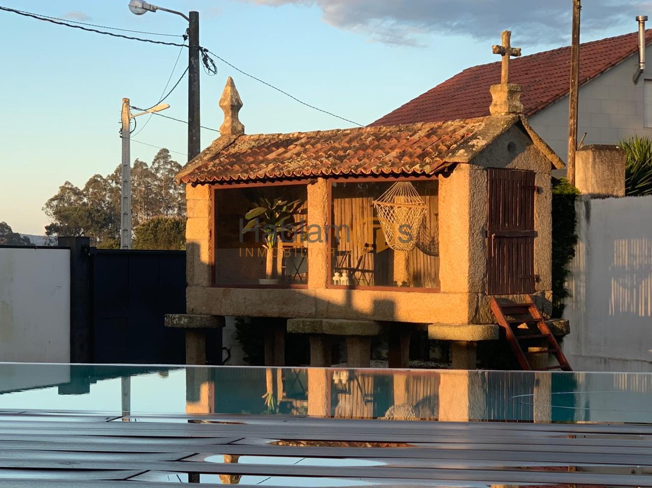 En el exterior, la propiedad ofrece una preciosa piscina, rodeada de tarima y zonas de descanso, ideal para disfrutar de largas jornadas al aire libre. La finca cuenta además con zona de juegos infantil, espacios ajardinados y una cómoda zona de aparcamiento para varios vehículos. Uno de los elementos más singulares es su hórreo tradicional reconvertido en una elegante salita acristalada, un detalle exclusivo que aporta carácter, historia y un encanto absolutamente diferenciador.