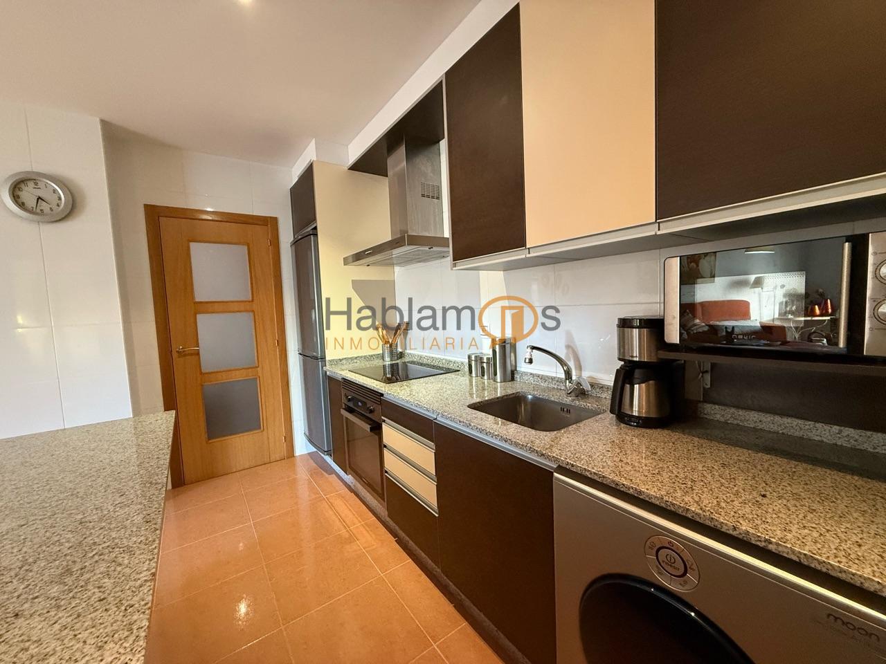 Cocina americana totalmente equipada, integrada en un luminoso salón,
